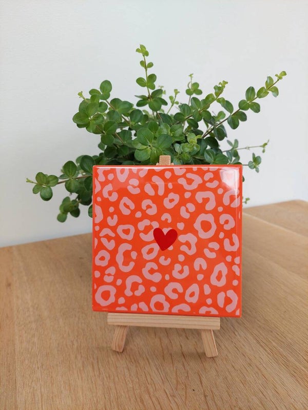 Leuke fleurige tegel met panterprint en hartje.